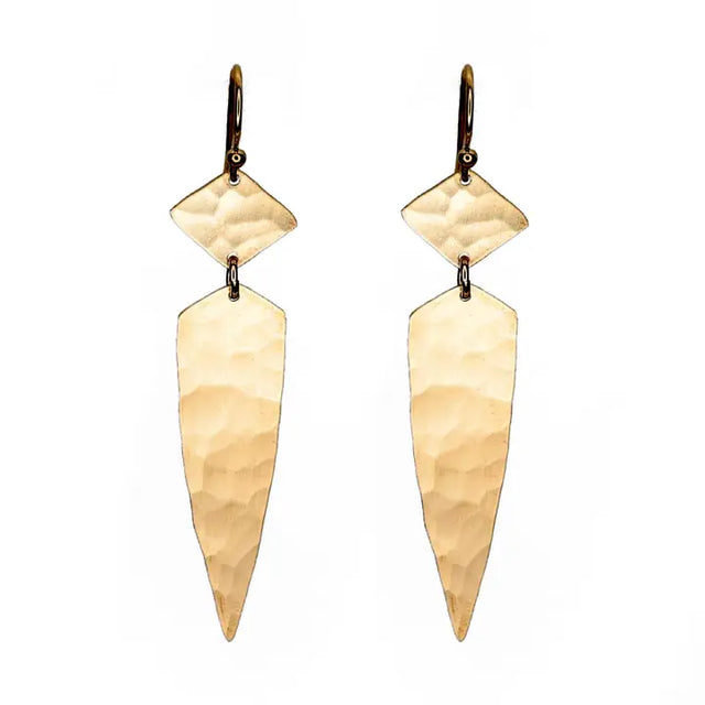 The Lanza Earrings feature an elegant long arrowhead shape in two parts. The earrings are created with hand cut shapes with my signature hammered finish. These earrings are the perfect size for everyday wear but are still striking in appearance.