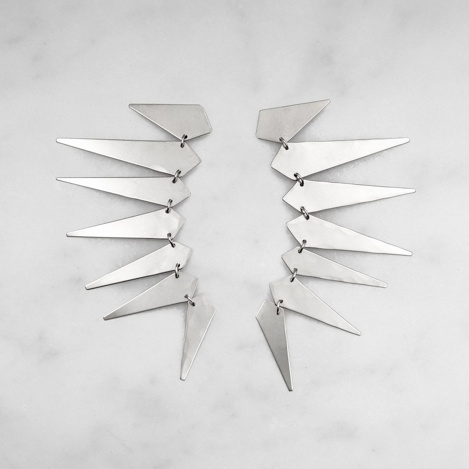 The maxed out version of our original Punk Earrings in hand cut sterling silver, brass or gold fill. Mesmerizing and amazing movement!