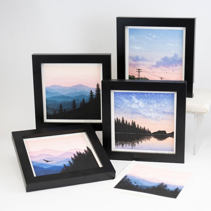 Original, framed 6x6 watercolor painting made by Kristin McKeever in Massachusetts.