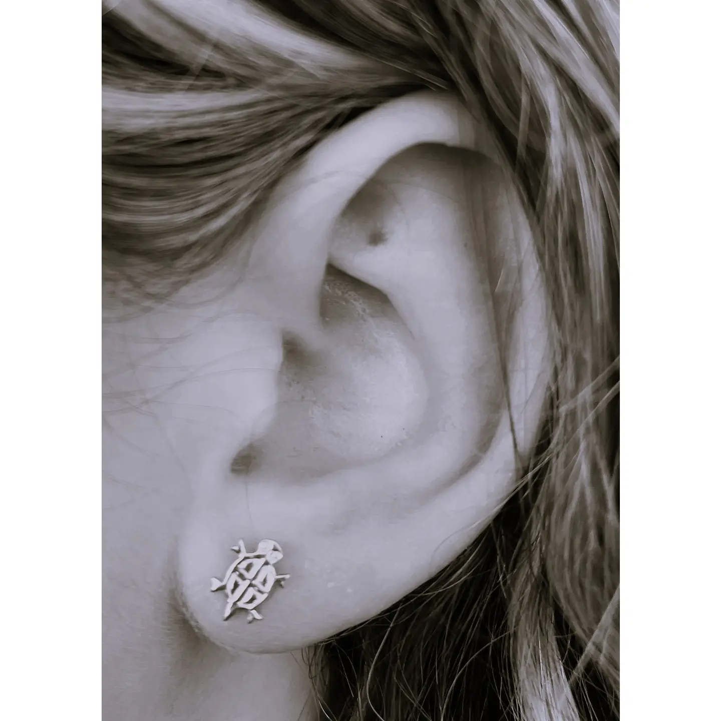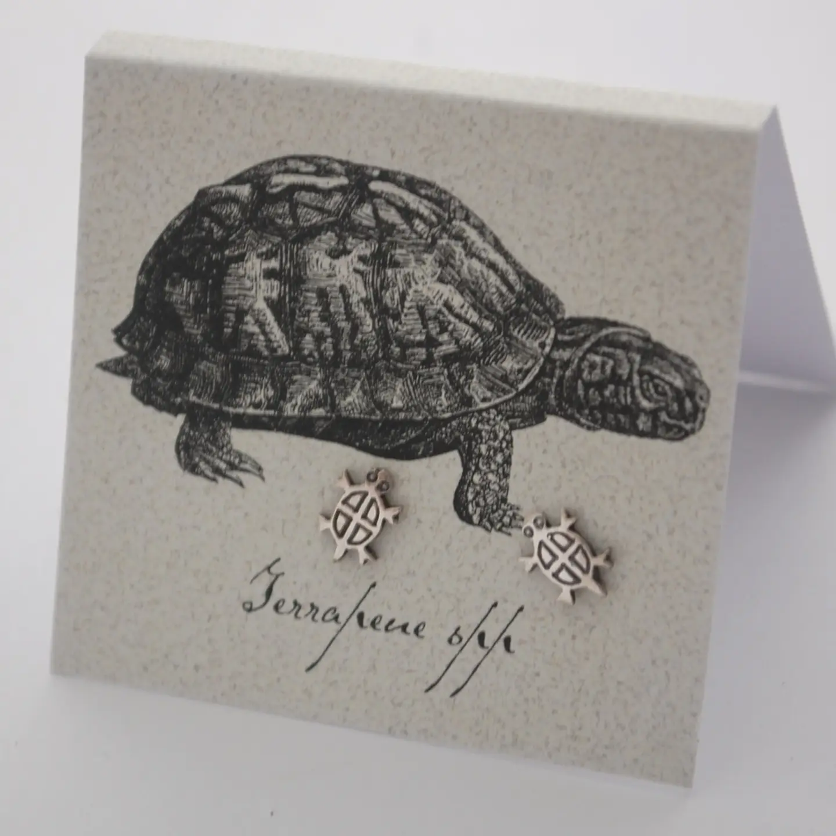Sterling Silver Turtle earrings mounted on exclusive tent Natural History cards. Educational information on back of card.