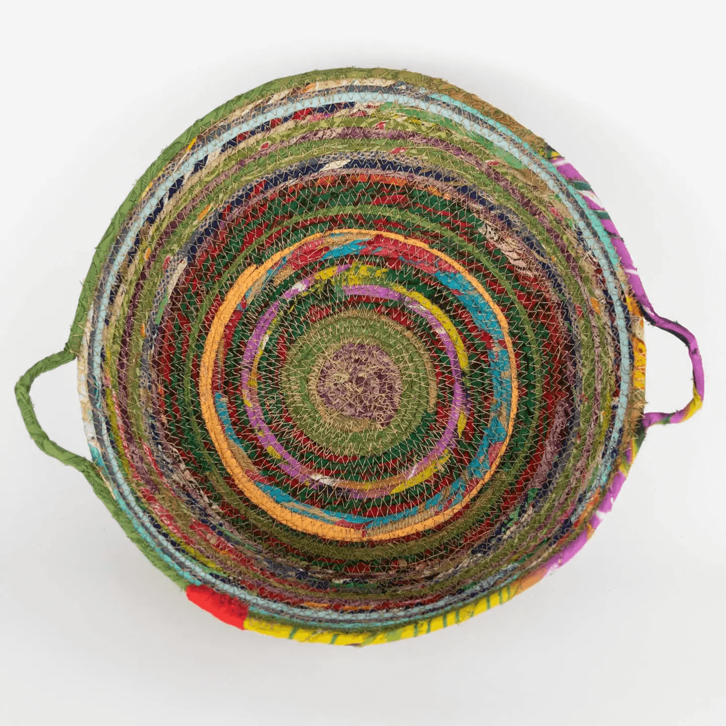 Due to the resourceful re-use of recycled sari, each basket is a unique color. - Handcrafted in India