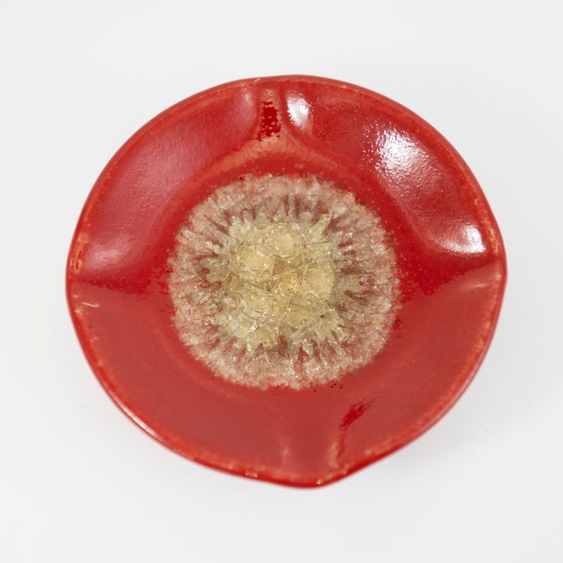 These ripple dishes are wheel-thrown from sustainable stoneware clay, reflecting the beauty of small-batch handmade pottery. Each dish is one-of-a-kind, featuring fused glass that highlight textures inspired by geodes and natural gemstones.