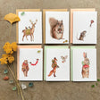 Cada tarjeta mide aproximadamente 4,75" x 3,5", y se corta, imprime y dobla cuidadosamente aquí en el estudio de Polanshek of the Hills, Vermont, y se empaca con cuidado.