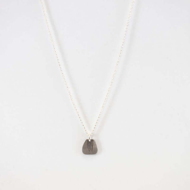 When designing a piece, Mary arranges the components to see the interaction of positive and negative spaces. Her interests lie in imperfection, preferring scratched metal surfaces & naturally flawed stones. She seeks out stones with unexpected asymmetry to complement her silver forms.