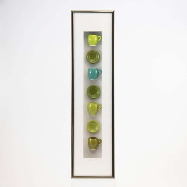 4x16 Vertical Shadowbox with Green Mugs & Plates