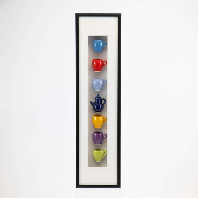 Each miniature by Carlos Silva is hand-tooled on a tiny wheel (with a pin). Carlos doesn’t use molds, so each teapot, mug, and piece of dinnerware is one-of-a-kind.
