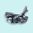 A silver ring featuring a vintage-style sparrow.