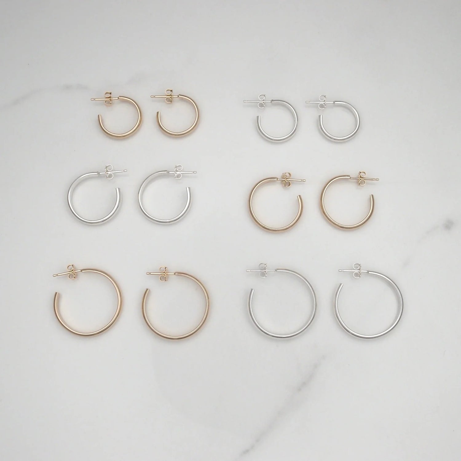 The Betty Hoops are as classic as they come - thick 1/2 round wire is formed into a perfect circle, with a smooth and shiny finish.
