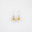 These special earrings feature sterling silver wrapped around photos of leaves.