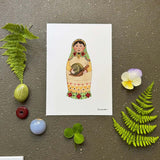 This is a quality reproduction of an original illustration. The original was drawn in pen and then painted with watercolor on paper.