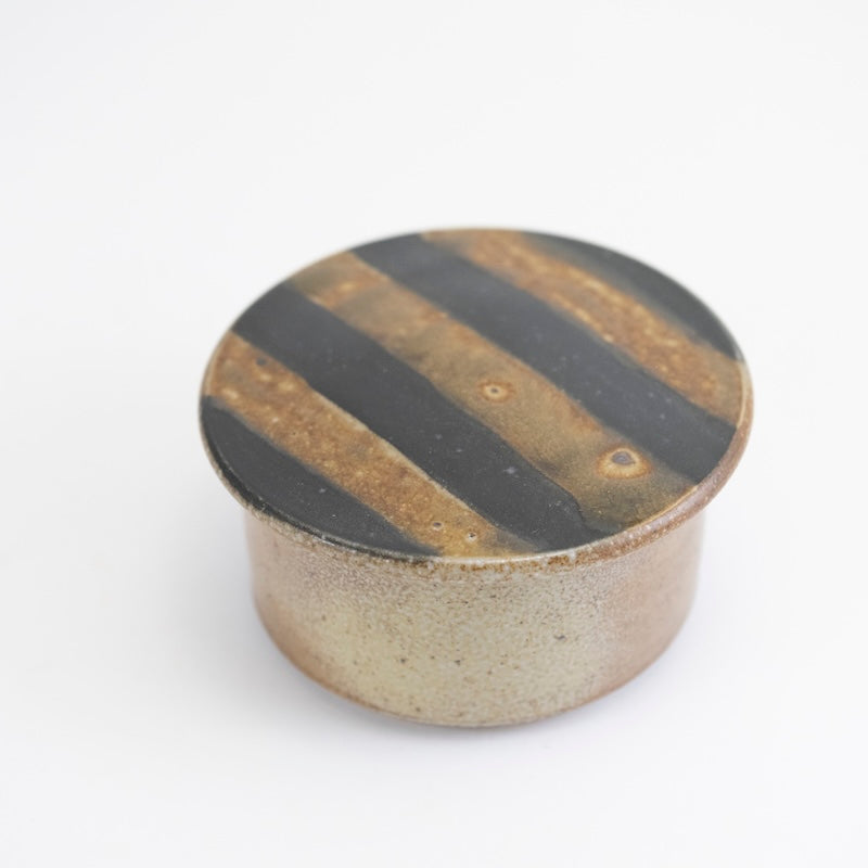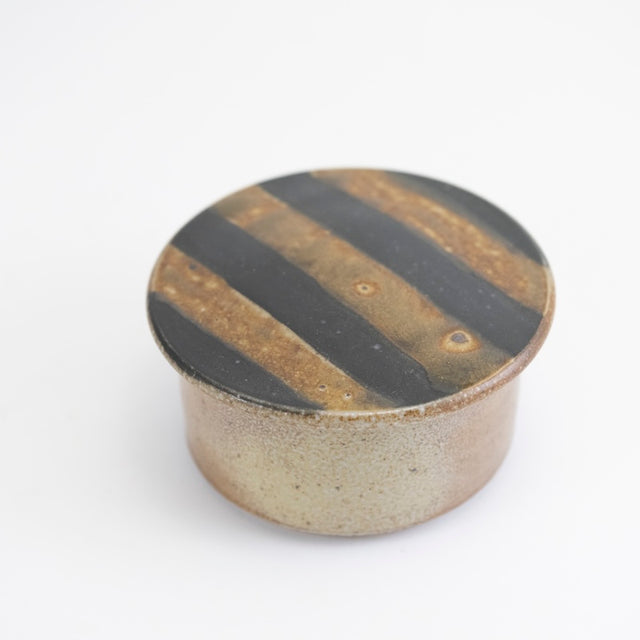 Handmade wood-fired canister by Maya Machin in Western Massachusetts. Maya began working with ceramics in High School, focused on ceramics during her studies at Hampshire College, and after college apprenticed with Mark Shapiro for three years.